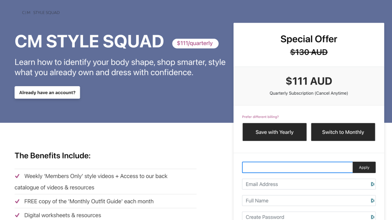 High 5 sister! Me too! Of course, you can still join. The CMSS is first and foremost a COMMUNITY. Our private Facebook group is all about members sharing their outfits, style finds, advice and inspiration. You will love our weekly #whatimwearingwednesday style challenges as well as exclusive Members Only style videos every Monday.